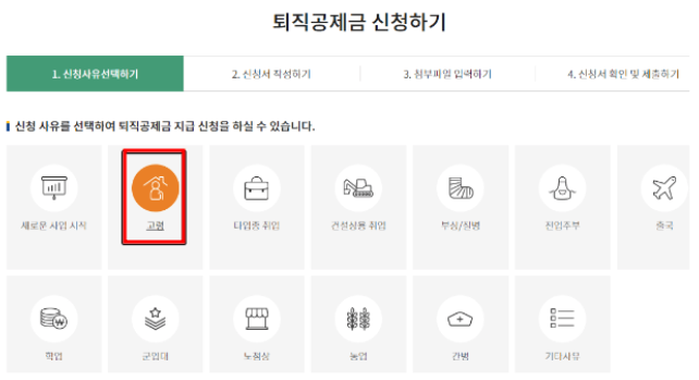 4. 퇴직공제를 신청하는 이유를 선택합니다. (예시, '고령'을 선택하였습니다.)